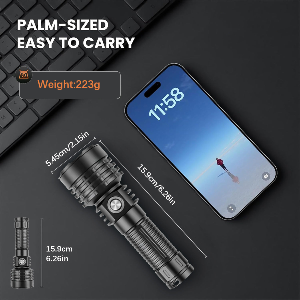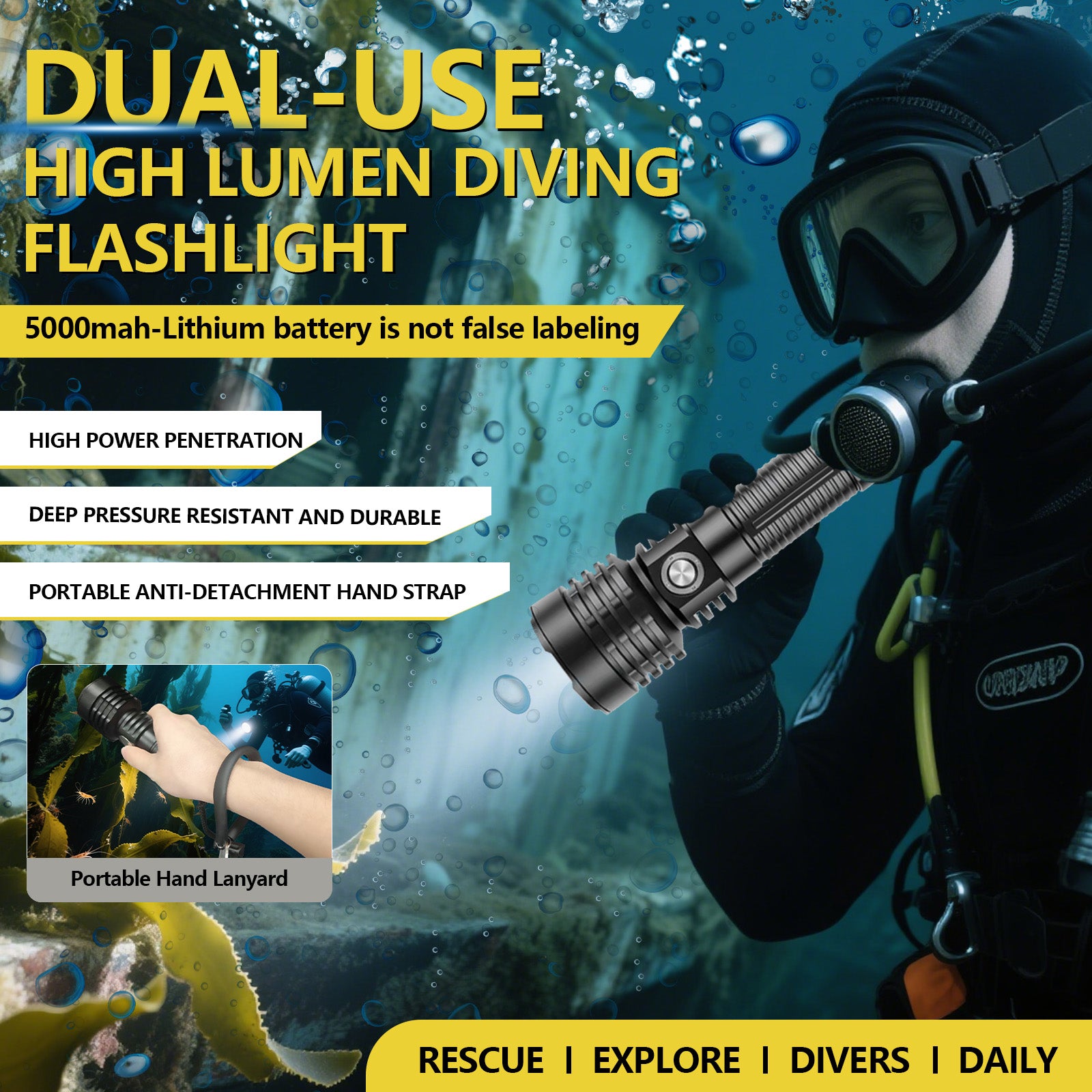 Professional-Grade Waterproofing: Engineered with an industry-leading IPX8 rating, this scuba flashlight performs flawlessly at depths up to 50 meters, ideal for challenging cave diving and deep-sea exploration. Its powerful beam cuts through murky water, enhancing visibility for signaling companions and identifying underwater hazards, making it a reliable choice among diving flashlights.
