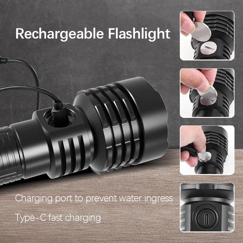 Fast & Convenient Type-C Charging: Recharge your dive light swiftly with the integrated Type-C port, achieving a full charge in just 3 hours. Enjoy an impressive 15-hour runtime, supporting multiple dives without power concerns. Compatible with standard chargers, power banks, and laptops for maximum convenience on any adventure. This rechargeable diving flashlight is built for endurance.