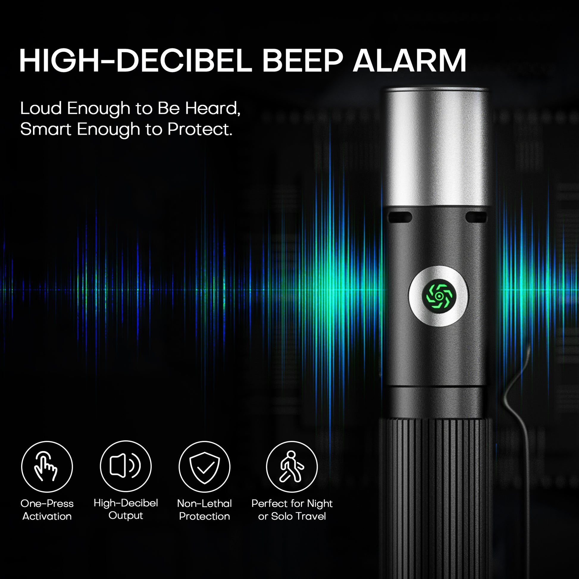 - 【Three Layers of Built-In Safety】 This EDC flashlight is designed for critical moments — featuring a strobe mode to disorient threats, a tail arc ignition for fire-starting or last-resort defense, and a beep alarm to signal for help. Essential for personal protection, survival kits, and everyday preparedness.